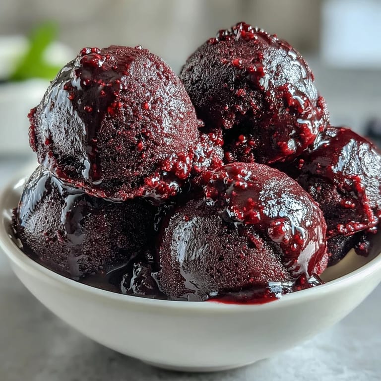 Save The first time I encountered black currants was at a farmers market in early July, when the vendor handed me a single dark berry and told me to prepare for a shock. The intensity of that tiny fruit, somewhere between a grape and something wilder entirely, stayed with me for days. I bought two cartons on the spot, not quite knowing what I would make, but knowing I needed more of that flavor in my life. This sorbet became the answer, a way to capture that shock of tartness in something cool and graceful.