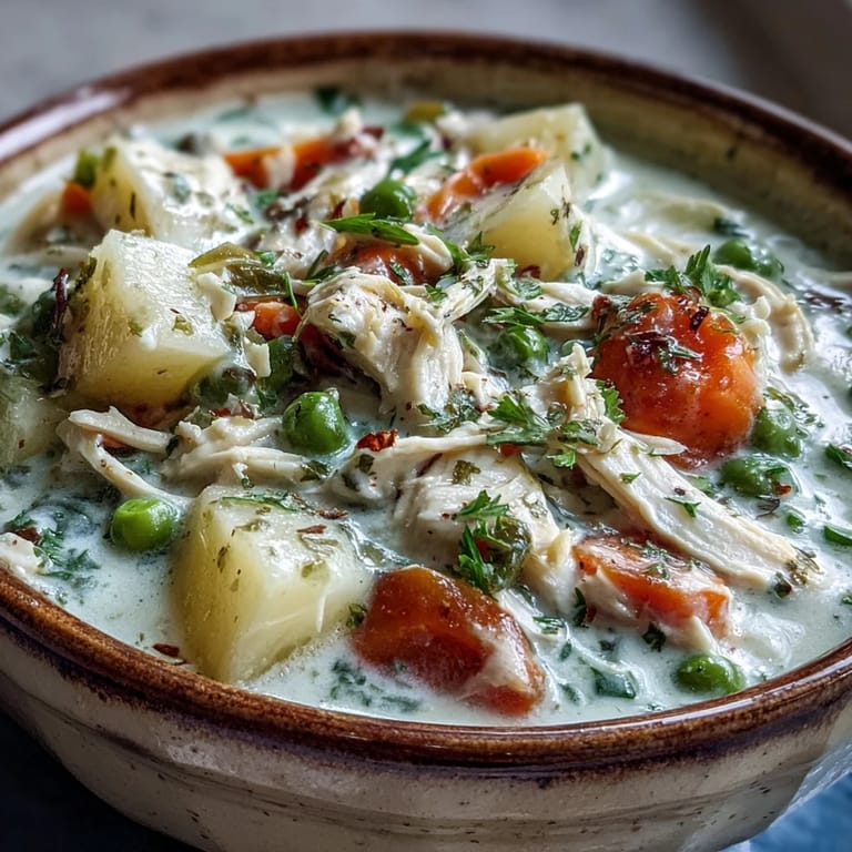 Save There's something about a bowl of creamy chicken pot pie soup that stops you mid-afternoon and makes you pause. My neighbor knocked on the door one chilly November evening asking if I had any soup going, and honestly, I didn't, but I had a rotisserie chicken from the grocery store and an hour to spare. What came together was this: a golden, herb-scented broth loaded with tender vegetables and shredded chicken that tastes like someone wrapped you in a warm blanket. It's become the soup I make when I want people to feel genuinely cared for, not just fed.