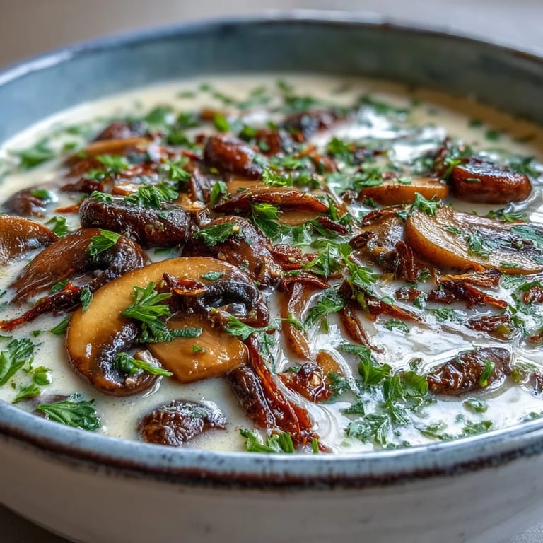 Save The sky was that heavy shade of slate that usually signals a long afternoon indoors with a book. I found myself staring at a pile of cremini mushrooms on the counter wondering how to capture that deep forest smell in a bowl. This soup happened by accident when I ran out of steak but had a craving for that tangy stroganoff finish. It turns out the mushrooms do a much better job of soaking up the smoky paprika and herbs. Now this pot of gold is my go to when the wind starts rattling the windowpanes.