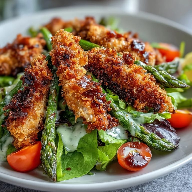 Save There's a particular Wednesday afternoon I can't shake from my mind when this salad saved my week. I'd been staring at a rotisserie chicken and some asparagus, thinking they needed to become something more than their separate selves, when the idea of crisping up those green spears in Parmesan and breadcrumbs just clicked. The kitchen smelled like toasted cheese and garlic, and suddenly I had something that felt both indulgent and genuinely good for me.
