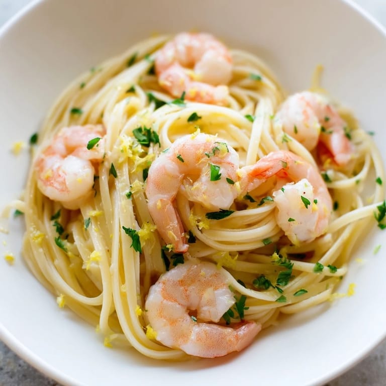 Save My neighbor knocked on my door one Tuesday evening with a grocery bag of shrimp she couldn't use before leaving town. I had linguine in the pantry and garlic always on hand, so I threw this together without a recipe. The smell of butter and garlic filled the entire apartment within minutes, and I ended up eating dinner standing at the stove because I couldn't wait. Sometimes the best meals happen by accident.