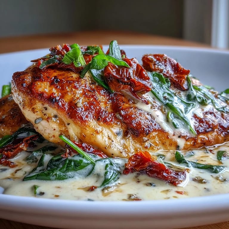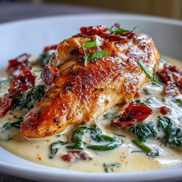 Tuscan cooking isn't about complicated technique or exotic ingredients; it's about letting good things talk to each other. Here, the earthiness of spinach, the brightness of sun-dried tomatoes, and the warmth of garlic and cream create this perfect triangle of flavor that feels both simple and sophisticated. The key is not rushing the sauce—give it time to come together and thicken, and you'll taste the difference.