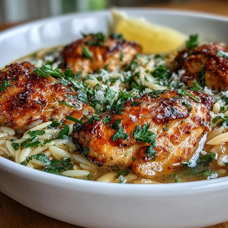 Save There's something magical about weeknight cooking when everything comes together in a single pot—no juggling pans, no mountain of dishes waiting afterward. I discovered this lemon garlic chicken and orzo on a Tuesday when I was craving something bright and comforting at the same time, something that felt restaurant-quality but didn't demand hours of my attention. The first time I made it, my kitchen filled with this incredible aroma of toasted garlic and lemon that had my partner wandering in from the other room asking what smelled so good. Now it's become my go-to meal when I want to impress people without letting them see the minimal effort involved.