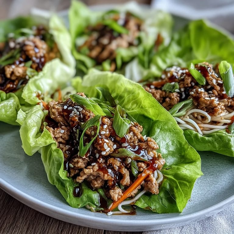 Serve these immediately while the filling is warm and the lettuce is still crisp—the contrast is essential to the experience. The filling keeps well in an airtight container for three days, and you can reheat it gently in a pan before assembling, though the lettuce leaves are best used fresh and assembled just before eating. My trick is to keep everything prepped and let guests build their own cups at the table, which turns it into something interactive and fun.