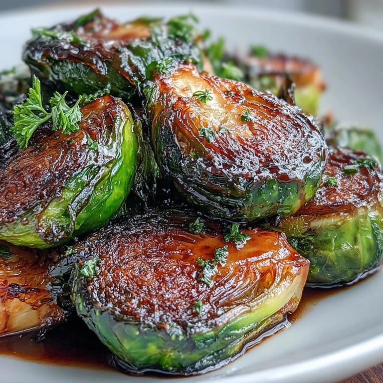 Save My neighbor brought a plate of these roasted Brussels sprouts to a winter potluck, and I watched three different people go back for seconds. What struck me wasn't just how good they tasted—it was the way the balsamic glaze caught the light, dark and glossy, almost jewel-like against the caramelized edges. I asked for the recipe that night, and she laughed, saying it was so simple she almost felt guilty sharing it. That was years ago, and now this is the side dish I make whenever I want to feel like I've actually tried.