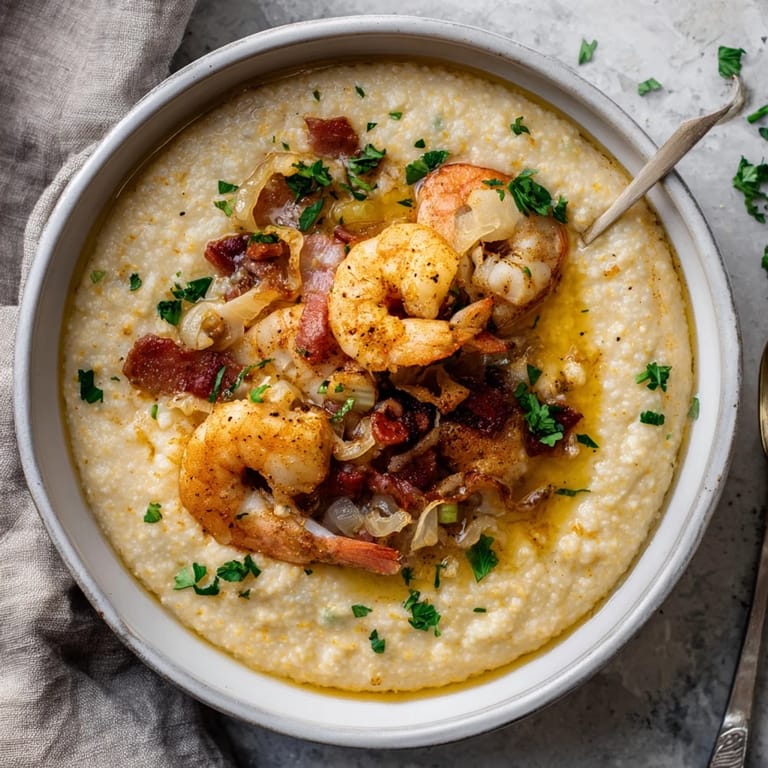 The key to serving this dish at its best lies in managing your timing so everything comes together at once. I start the grits first since they need the longest cooking time and hold their warmth beautifully, then begin the shrimp and sauce components when the grits are about 10 minutes away from done. This ensures the shrimp stay perfectly tender and the sauce is fresh when you sit down to eat.