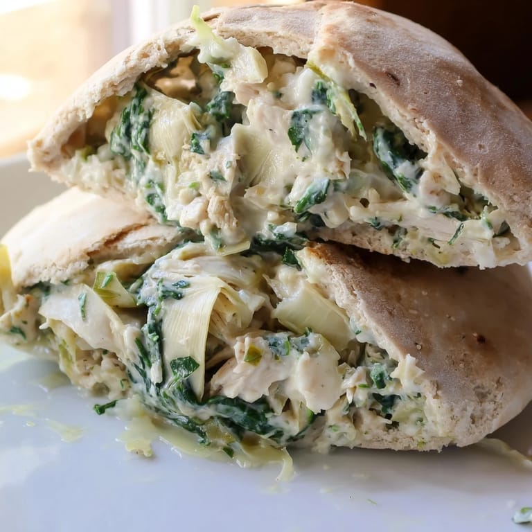 Save I stumbled onto this combination during one of those clean-out-the-fridge moments where creativity strikes out of necessity. The creamy spinach artichoke dip flavor profile tucked into warm pita bread became an instant household favorite that my family now requests weekly.