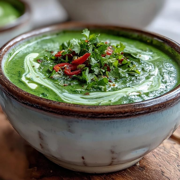 Save The kitchen was unusually quiet last Tuesday when the scent of crushed lemongrass first hit the air. I had grabbed a bunch of coriander on a whim, not knowing it would become the star of my lunch. This soup is a vibrant green hug that wakes up every single taste bud. I watched the coconut milk swirl into the greens like a silk ribbon. It felt like a discovery that needed to be shared immediately.