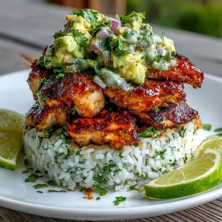Marinate chicken up to 8 hours in advance. Cook rice and prepare avocado mixture same-day for best texture and freshness.