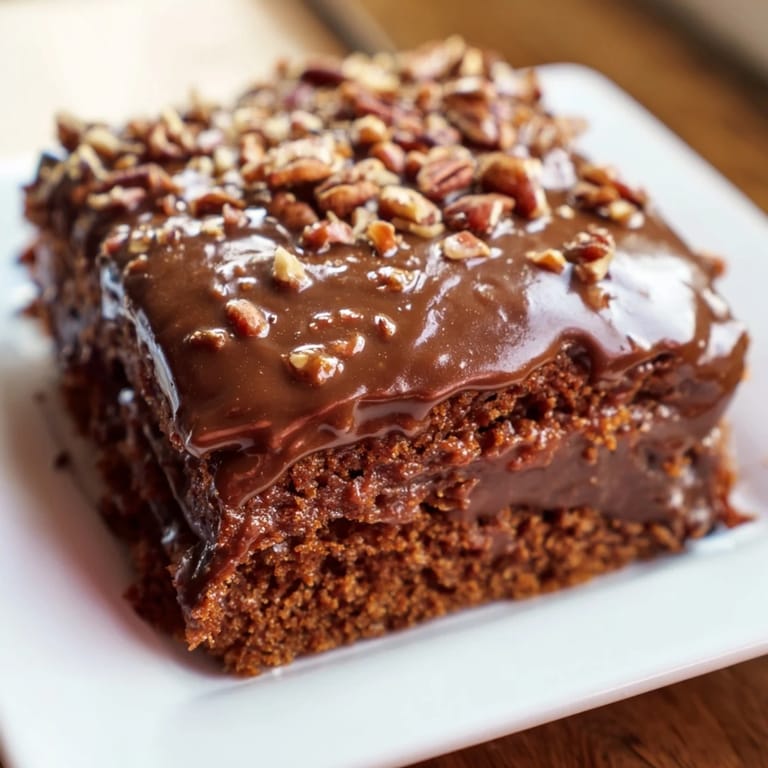 Save My grandmother pulled this cake straight from the oven on a sweltering July afternoon, and the kitchen filled with this deep, almost dark chocolate smell that made everything else fade away. She moved fast, pouring that glossy fudge icing over the hot cake with the confidence of someone who'd done it a hundred times, and I watched it melt into every crevice like something alive. That's when I understood why this cake is legendary in Texas—it's not just chocolate, it's an experience that happens in twenty minutes if you know the trick.